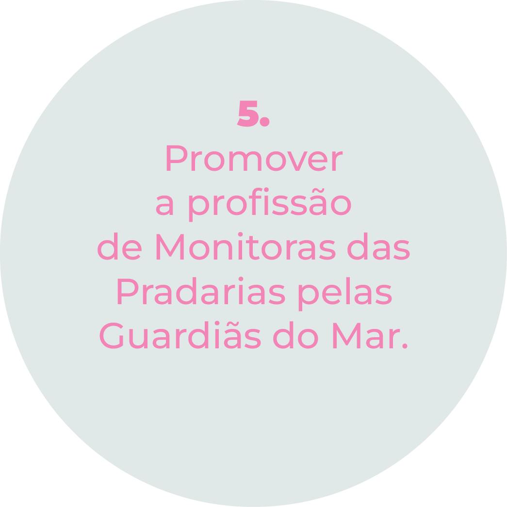 Criação e manutenção de novas profissões para as mulheres da comunidade piscatória, Guardiãs do Mar, como “Monitoras das Pradarias marinhas”. Através desta profissão, valorizamos o seu conhecimento tradicional sobre o estuário do Sado, promovendo a colaboração na recolha de dados que são integrados em projetos científicos e conferindo um rendimento complementar à profissão da pesca.